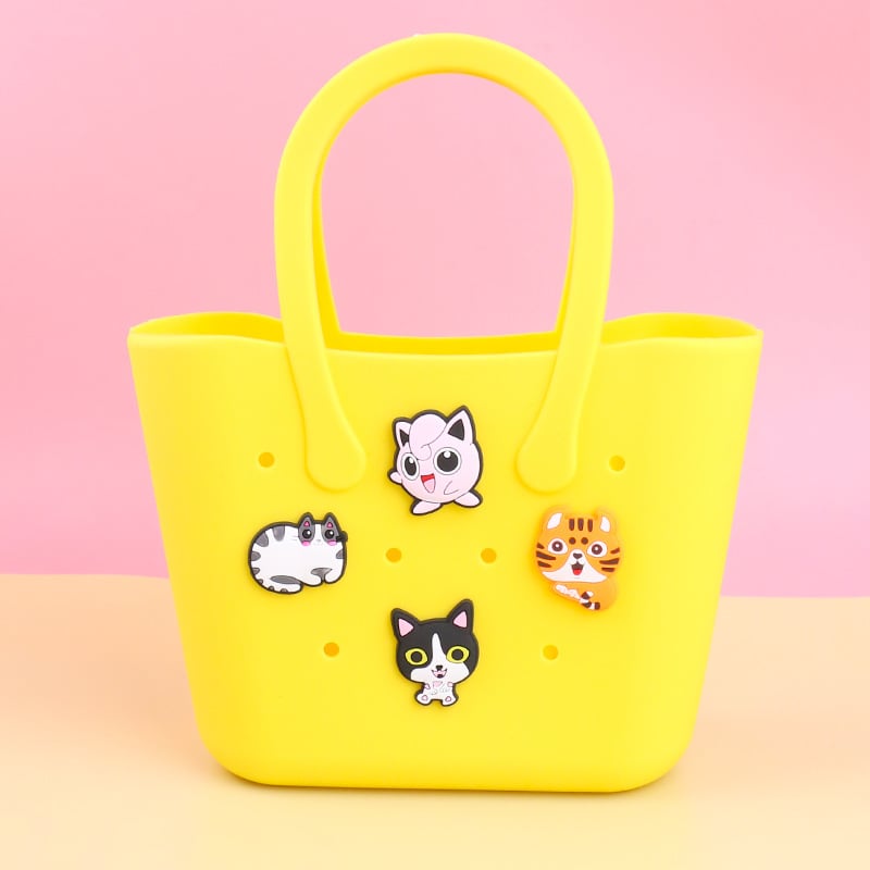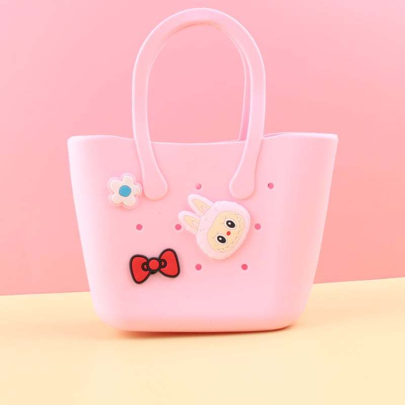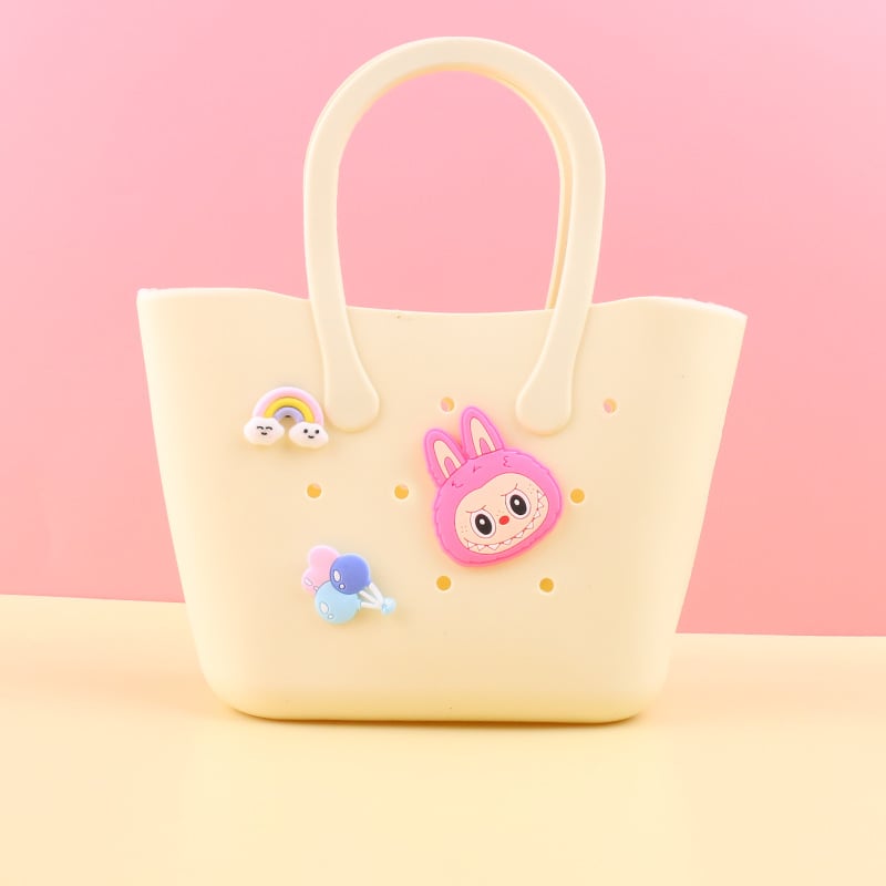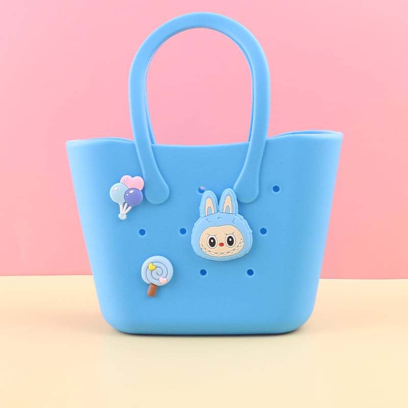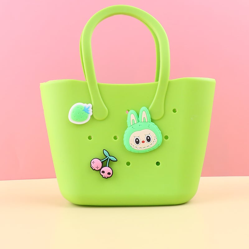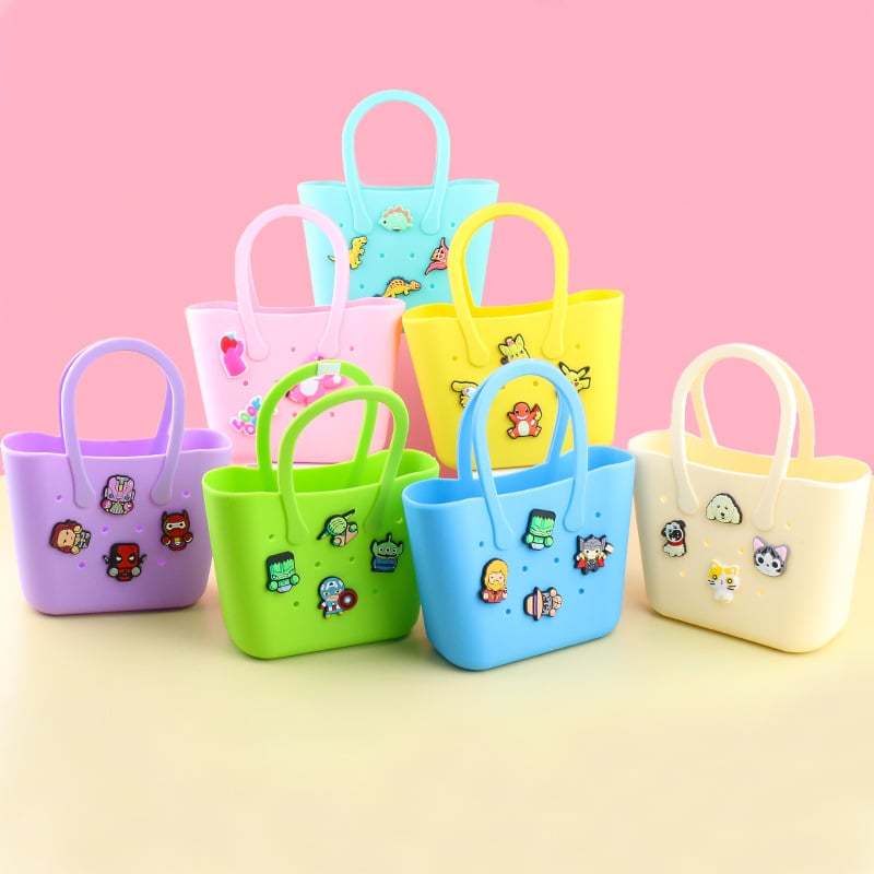 - Multi functional: The breathable hole design can help dry the damp items in the rubber mini bag. ensuring that various items are clean and fresh. So cute. Can be used as a beach bag. swimming pool handbag. girl shopping bag. daughter lunch bag etc
